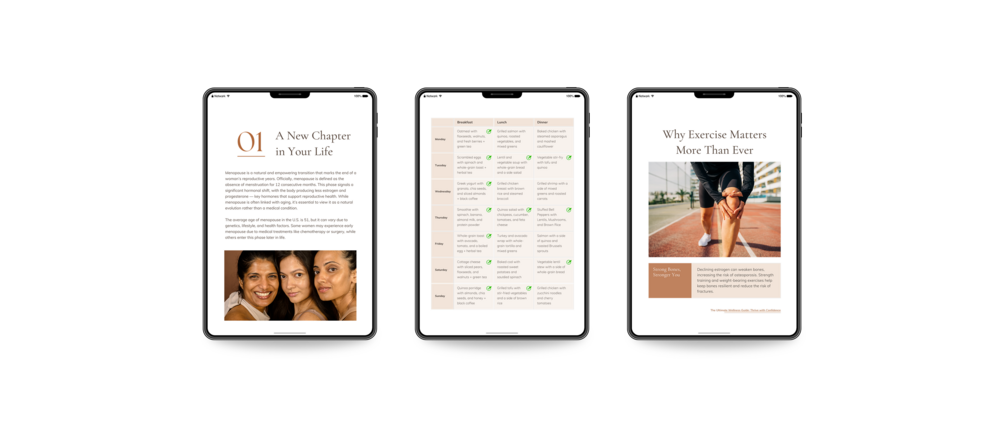 Get a practical, science-backed digital guide to help you thrive through every stage of menopause. Includes a 14-day meal plan, fitness routines, expert wellness tips, and a bonus cookbook with hormone-balancing recipes.